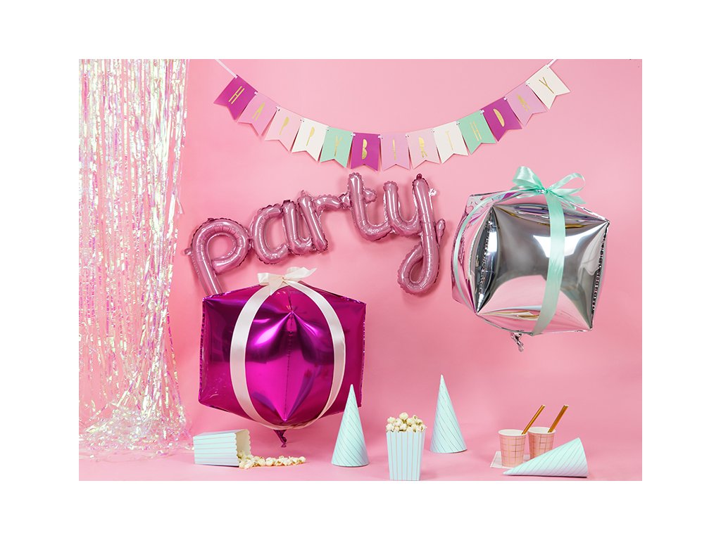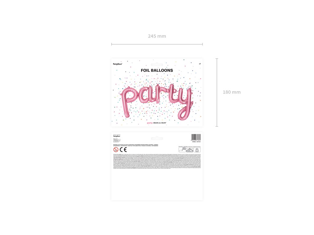 Tento krásný foliový balónek v barvě růžové - pink je tou nejlepší volbou na každou správnou párty. Tento fóliový balónek nelze nafouknout héliem neboť je při nafouknutí těžší než samotné helium, tudíž se nebude vznášet. Balonek lze nafouknout jen vzduchem pomocí kompresoru, pumpičky nebo pomocí brčka - duté slámky. Pomocí oček na balonku lze nápis "party" snadno zavěsit. Rozměry balonku jsou : 80x40cm