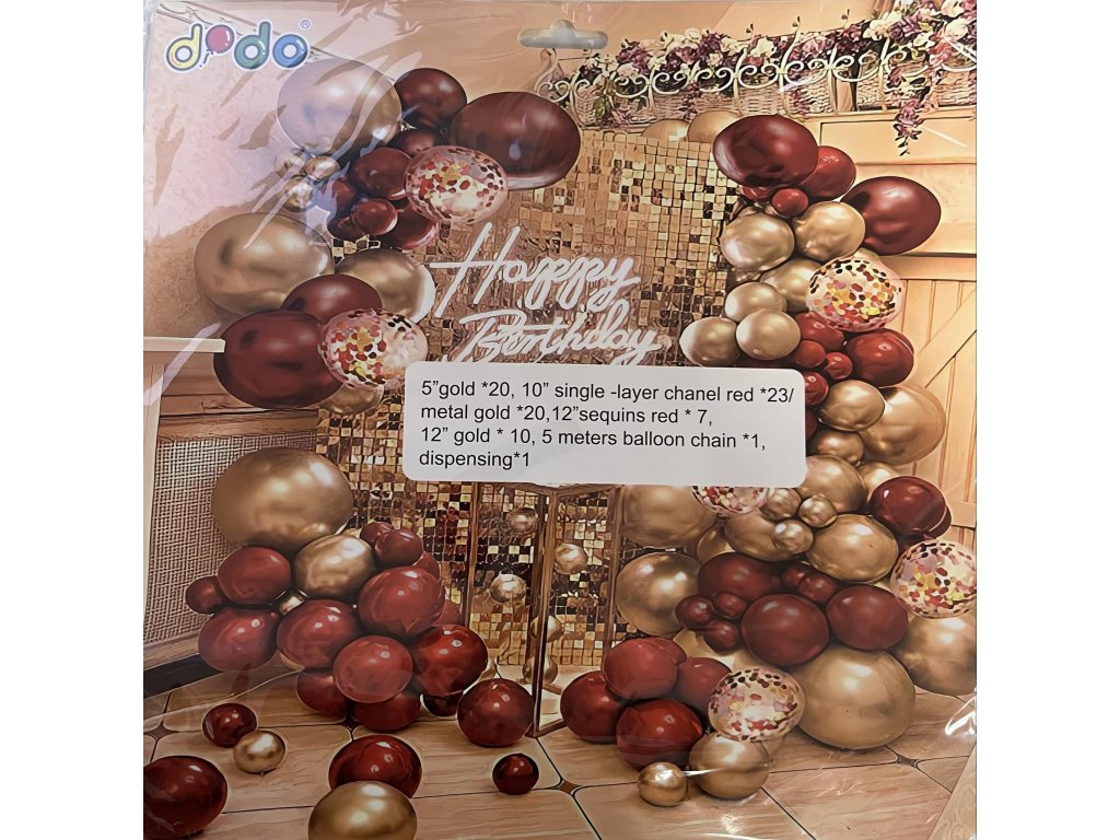 Balónková girlanda - Červeno - zlatá - 500 cm, 82 ks