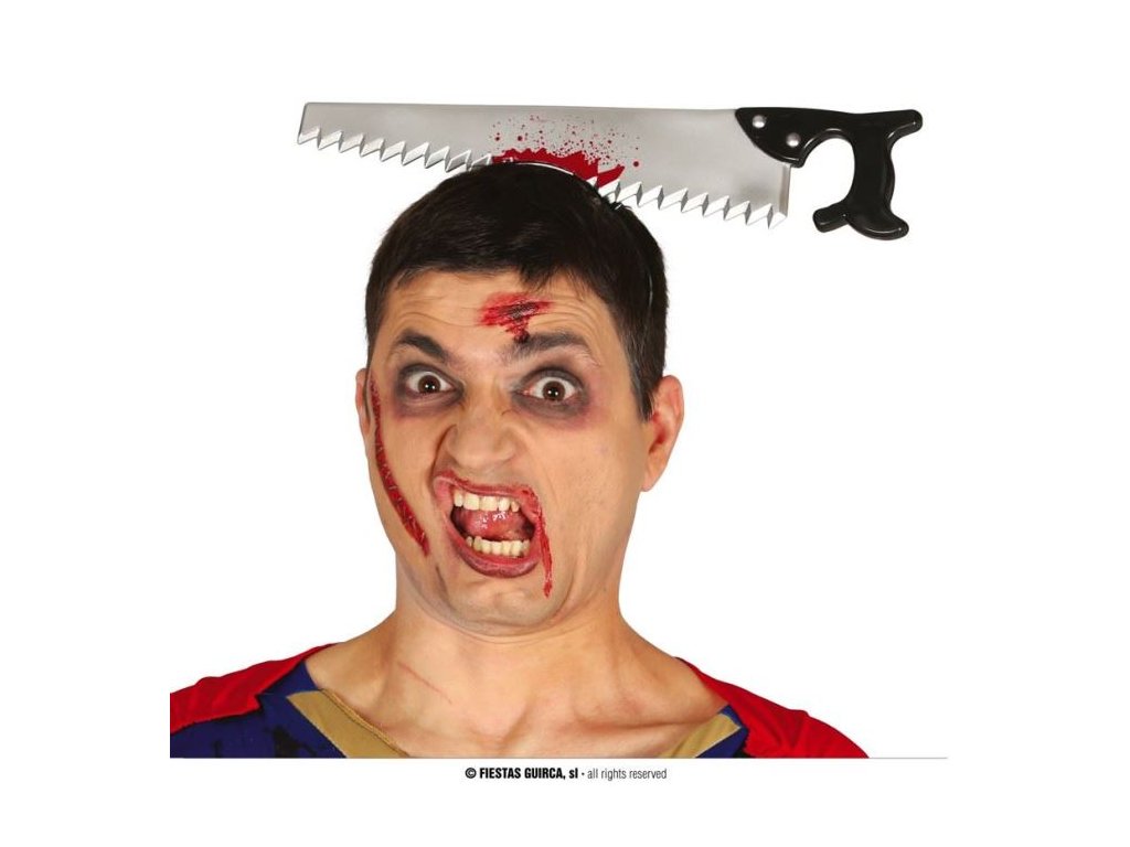 Čelenka s krvavou pilou na zábavné fotky. Úžasný doplněk na Horror párty a Halloweenský večírek. Po nasazení čelenky bude Vaše hlava vypadat, jako by byla pila skrz hlavu. Materiál: Plast Rozměr pilky: cca 36 cmDoplňkové parametry