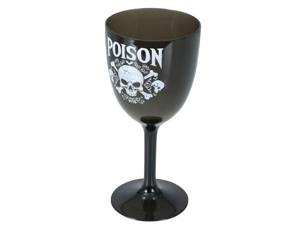 Černý plastový pohár např. na víno na originálním podstavci. Ideální k rozlévání vína či podávání jedovatých koktejlů na halloweenské, čarodějnické a hororové párty. Výška poháru 21 cm. Materiál: plastDoplňkové parametry