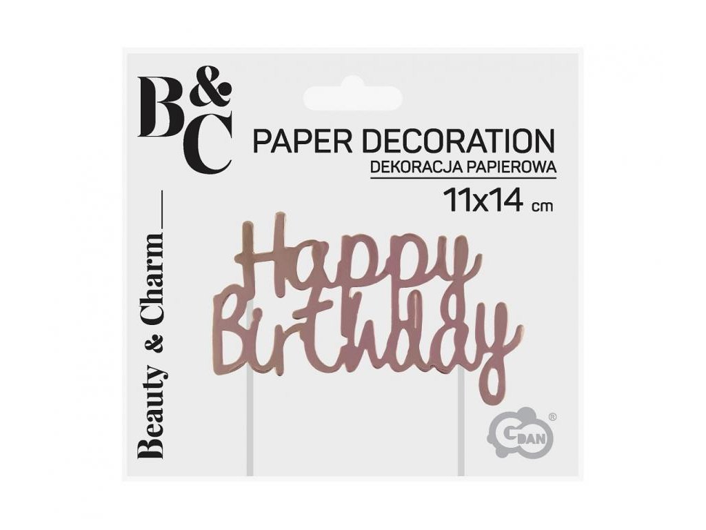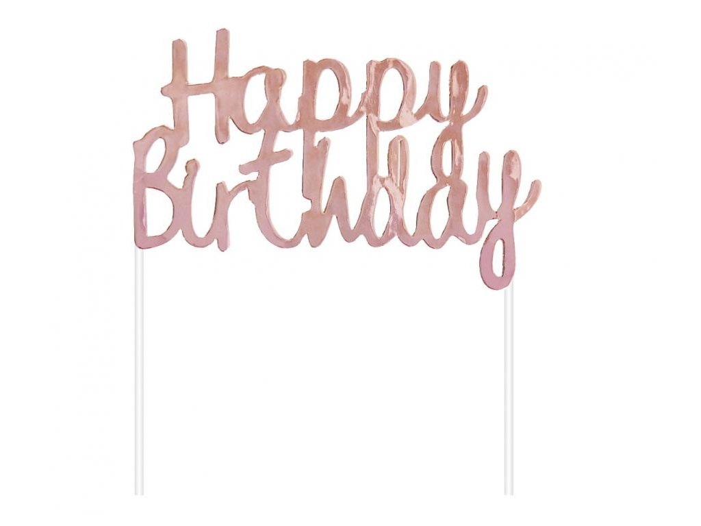 Dekorace - zápich na dort Happy Birthday - Rosegold - 11x14 cm