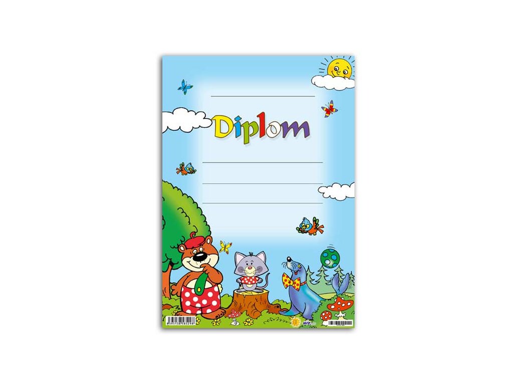 Barevný dětský diplom s kresleným obrázkem zvířátek - za každý dosažený úspěch je potřeba dostat písemnou listinu. Určený pro sportovní aktivity.Diplom obsahuje 4 řádky, do kterých můžete napsat jméno, umístění, za co diplom dostal, popřípadě kdo jej uděluje.