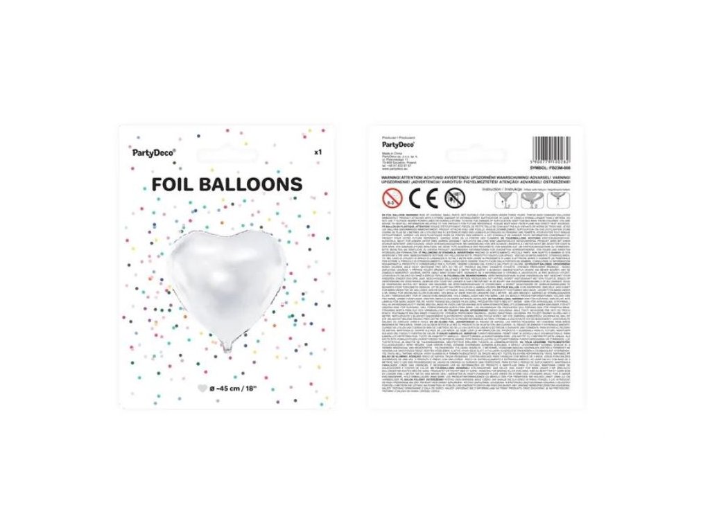 Foliový balón srdce bílé - Svatba - Valentýn - 60 cm