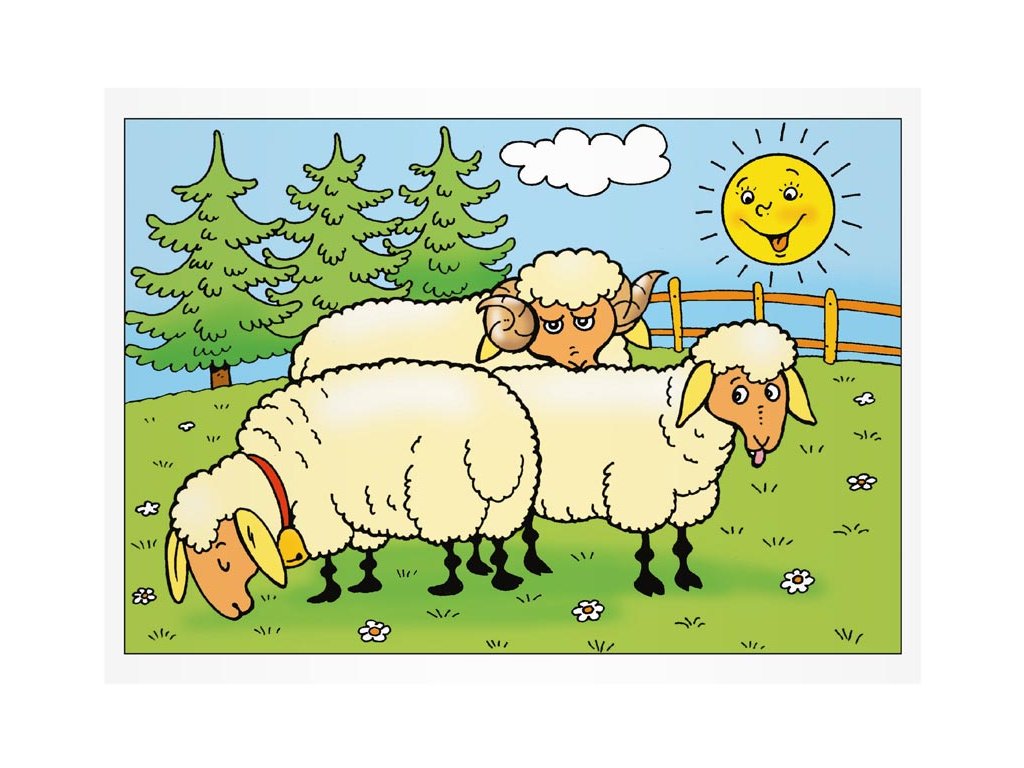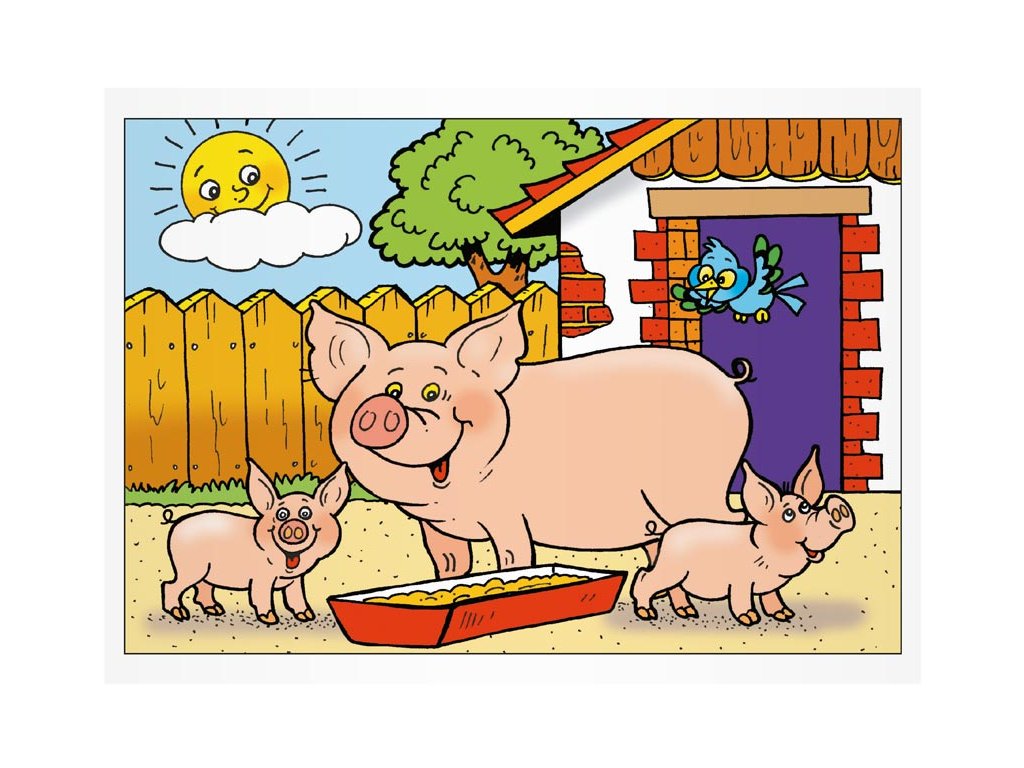 Počet předloh k vymalování: 8 (kočka a koťátka, ovečka, pes, prasátka, kohout a slepičky, koník a hříbátka, kráva s telátkem, husa)