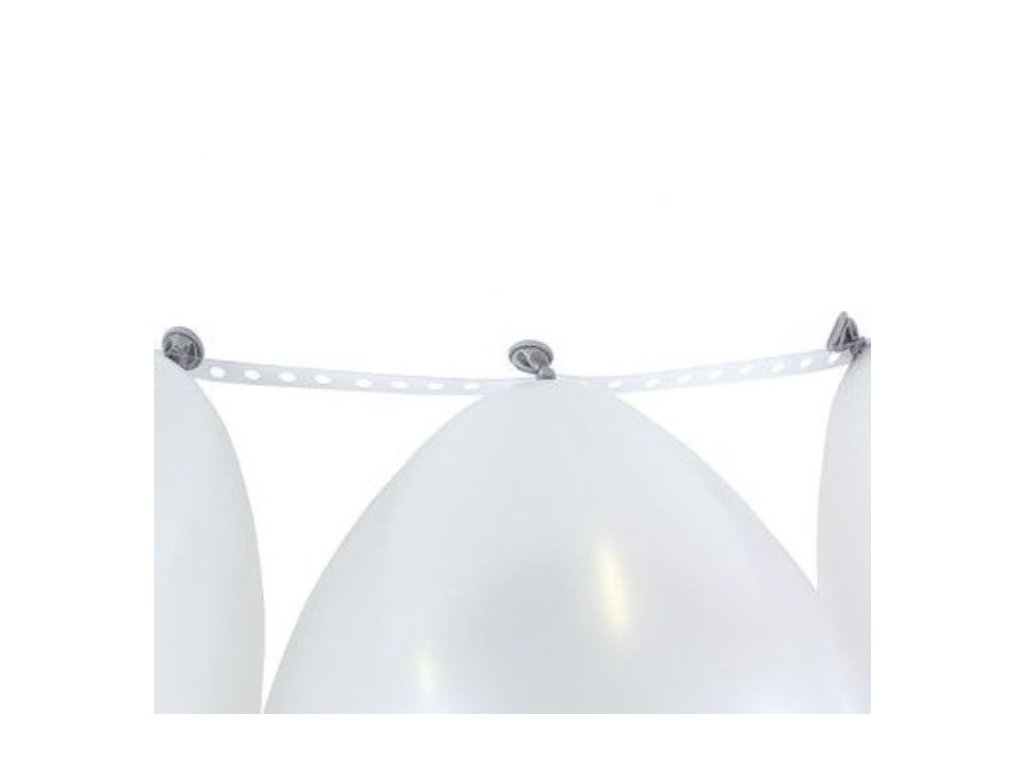 Průhledná páska s očky (průvleky na na fouknuté balonky), balonky jednoduše nastrkáte do oček, zastřihnete pásku do požadované délky a už jen zavěsíte do prostoru. Pokud balonky nafouknete héliem, vytvoří vám při upevnění obou konců k zemi bránu (oblouk).Doplňkové parametry