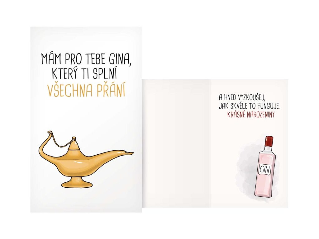 Přání humorné k narozeninám. Přání je s motivem Aladinovy lampy. Oslavy narozenin patří k výjimečným a příjemným okamžikům v životě. Potěšte oslavence a spolu s dárkem mu věnujte originální a krásné přáníčko, které mu bude připomínat tuto radostnou událost.Text na přední straně: