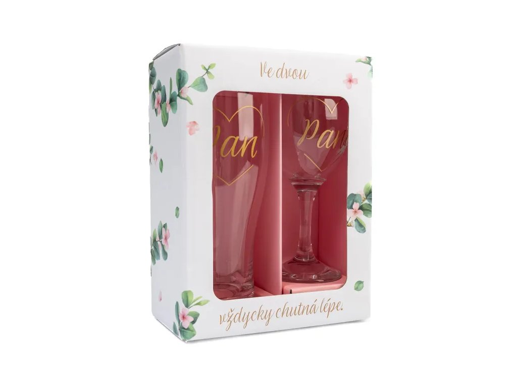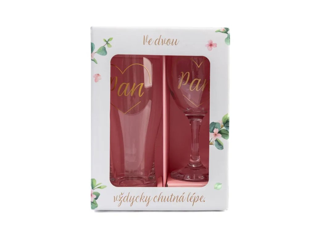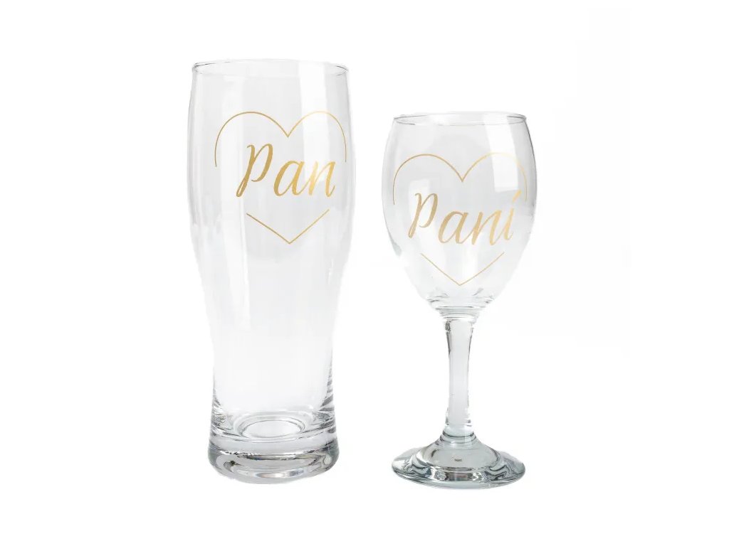 Sada sklenky na víno s půllitrem s potiskem pro novomanžele. Objem: sklenička na víno 220 ml, na pivo 500 mlDoplňkové parametry
