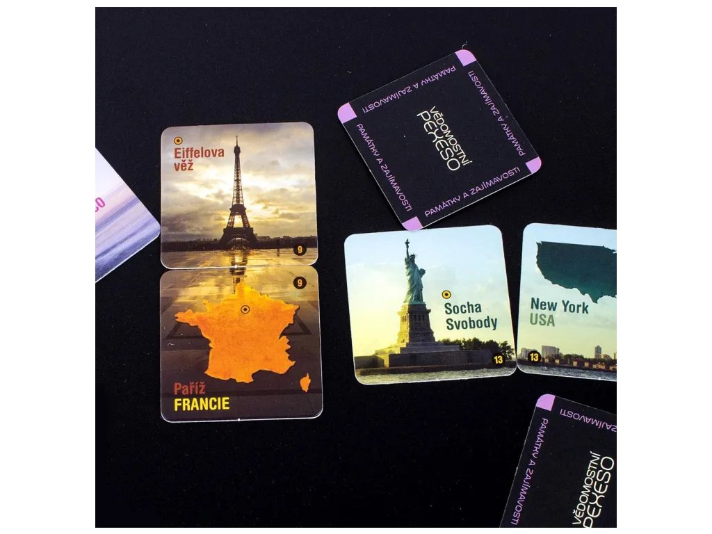 Hra vychází z klasického pexesa. Nehledají se však dva stejné obrázky, ale dvě informace, které k sobě patří. Text je doplněn i motivem tvořícím celek, jakmile se dvě k sobě patřící kartičky položí vedle sebe či pod sebe. Díky vědomostnímu pexesu si můžete oživit znalosti hlavních měst Evropy či historie, připomenout si osobnosti 20. století, projít si památky a zajímavosti, znovu se pobavit u filmových hlášek, rozpomenout se na světová nej nebo poznat známá i méně známá pořekadla.Doplňkové parametry