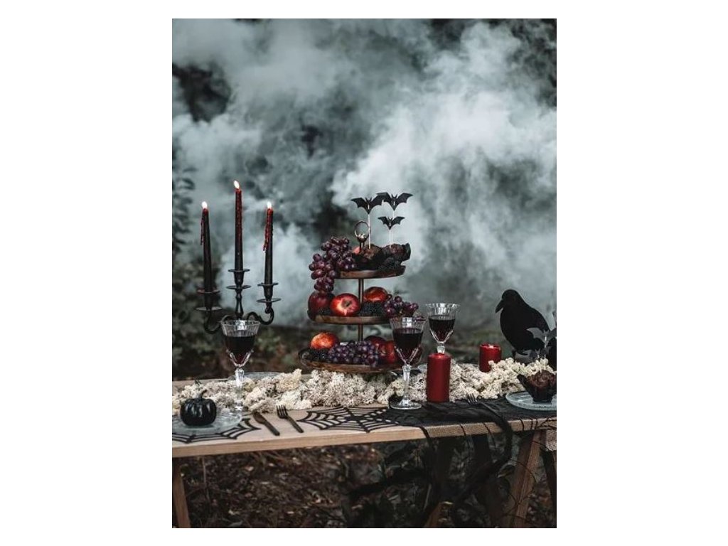 Stylová zapichovátka do cupcaku, muffinu nebo dortu s netopýry , které jsou skvělým doplňkem na jakoukoliv Halloweenskou párty či karneval. Obsah balení: 6 ks Rozměry netopýrů: 3 x - 3,5 cm 3 x - 4,7 cm Celková výška výrobku je: 3 x - 10 cm 3 x - 16 cm Zapichovátka jsou dodávána v rozloženém stavu a je potřeba je zkompletovat.